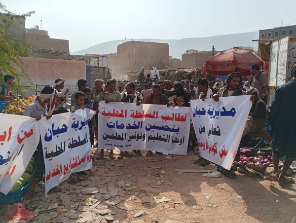 شهدت منطقة هدى مديرية حبان بمحافظة شبوة، اليوم السبت، مسيرة احتجاجية تعبيرًا عن استيائهم من سياسات حكومية يرون أنها فشلت في تحسين الخدمات الحيوية للمواطنين.