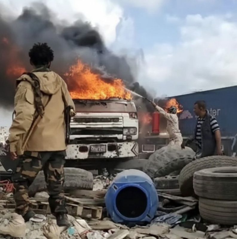 وأفادت مصادر محلية بأن النيران اشتعلت فجأة في شاحنتين كانتا تتواجدان في منطقة الانتظار داخل الساحة، مشيرة إلى أن أسباب الحادثة لا تزال مجهولة حتى هذه اللحظة.